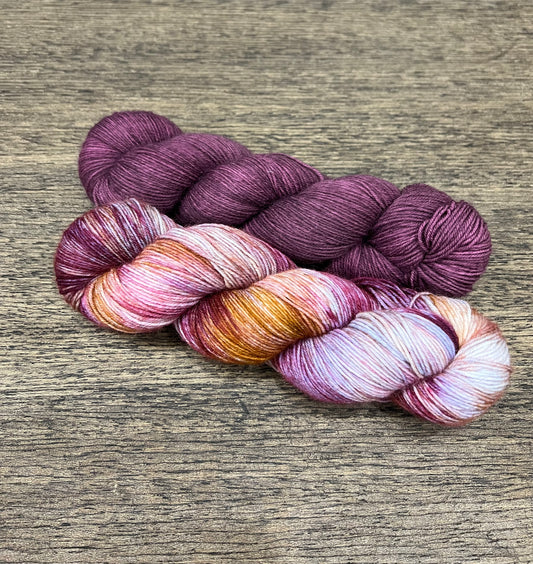 2 Skein Shawl Set - Copper Purple Burgundy Cream Variegated SUS