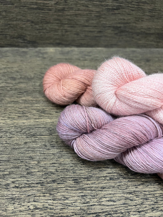 3 Skein Shawl Set -Peach Pink Soft Lace Romantic Colourways