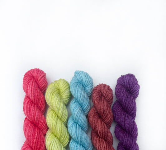 Coral Purple Blue Neon Mini Skein Yarn Set