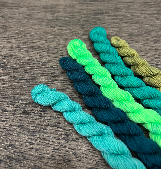 Neon Yellow Teal Assorted Mini Skein Set - 20g fingering weight