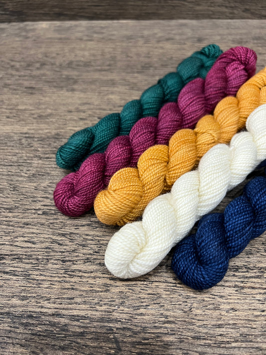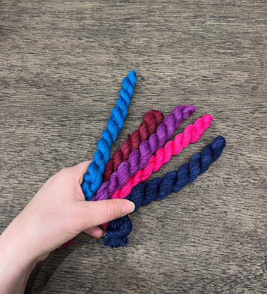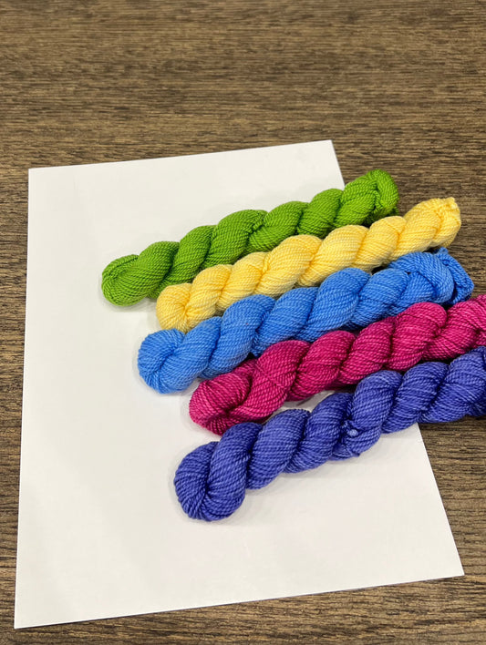 Blue Aqua Yellow Green Pink Mini Skein Set - 15 grams fingering weight