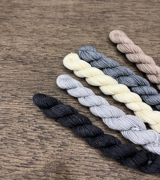Mystery Knit A Long Mini Skein Set for Gnomes, Hand Dyed Mini Skein Yarn Kit SW Merino Fingering Weight Gift for Knitters