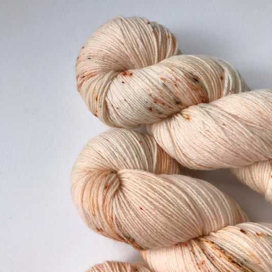 Hand Dyed Yarn “PEACH PEPPER” Orange Cream Olive Brown Superwash Merino DK Weight Yarn, Ready to Ship 100g 246 yards