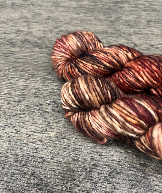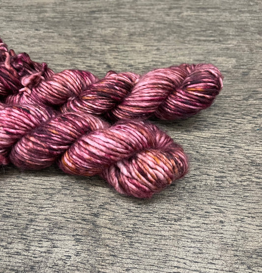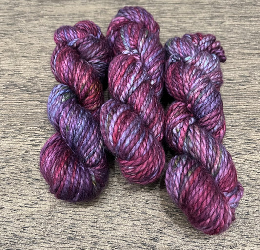 POCKETFUL OF POSIES- Purple Burbundy Brown Pink Soft Variegated SUPER BULKY