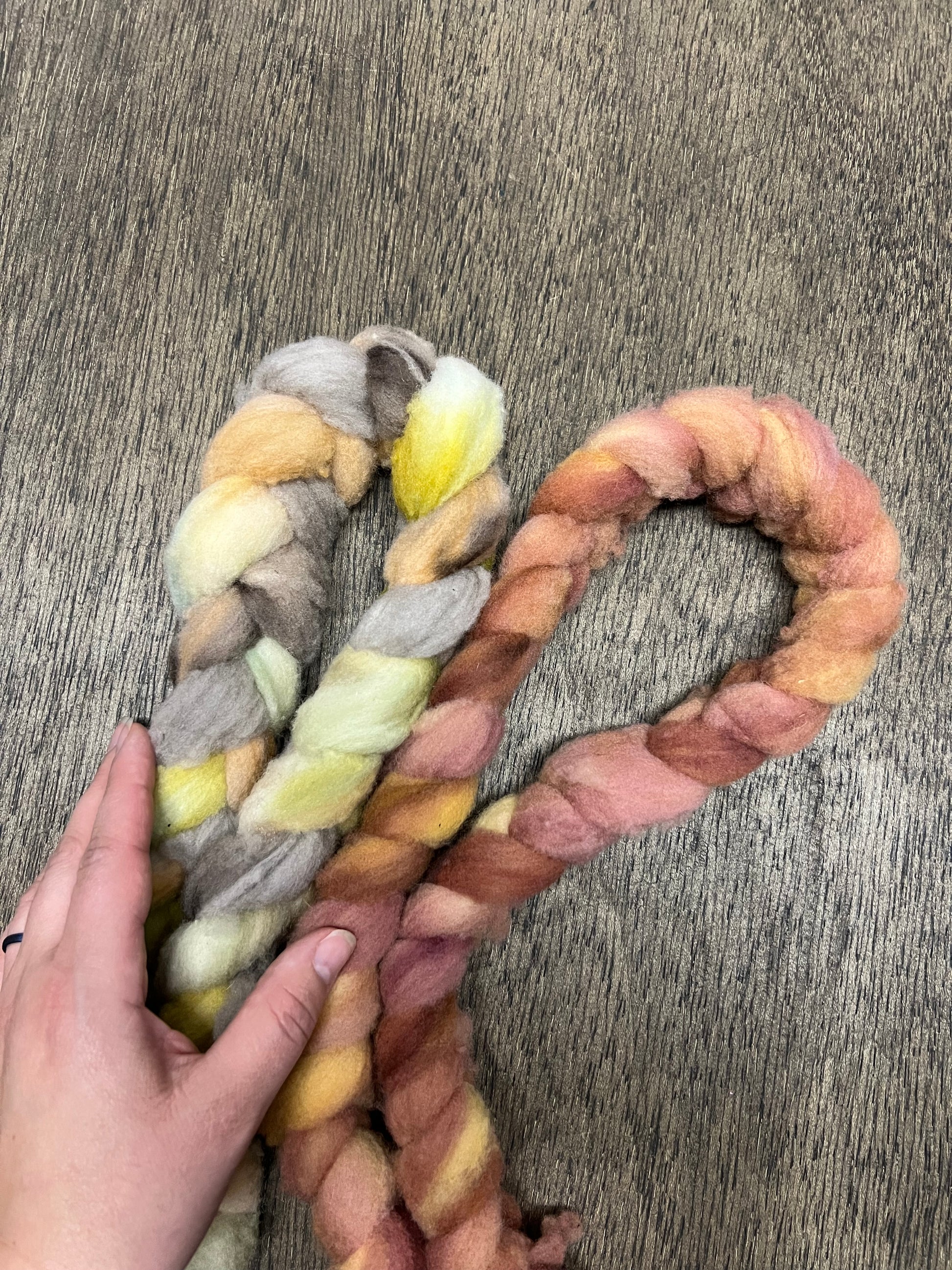 This listing is for 100 grams of hand dyed NON Superwash Targhee wool from Alberta, either as a single braid, or split into 2 x 50 gram braids