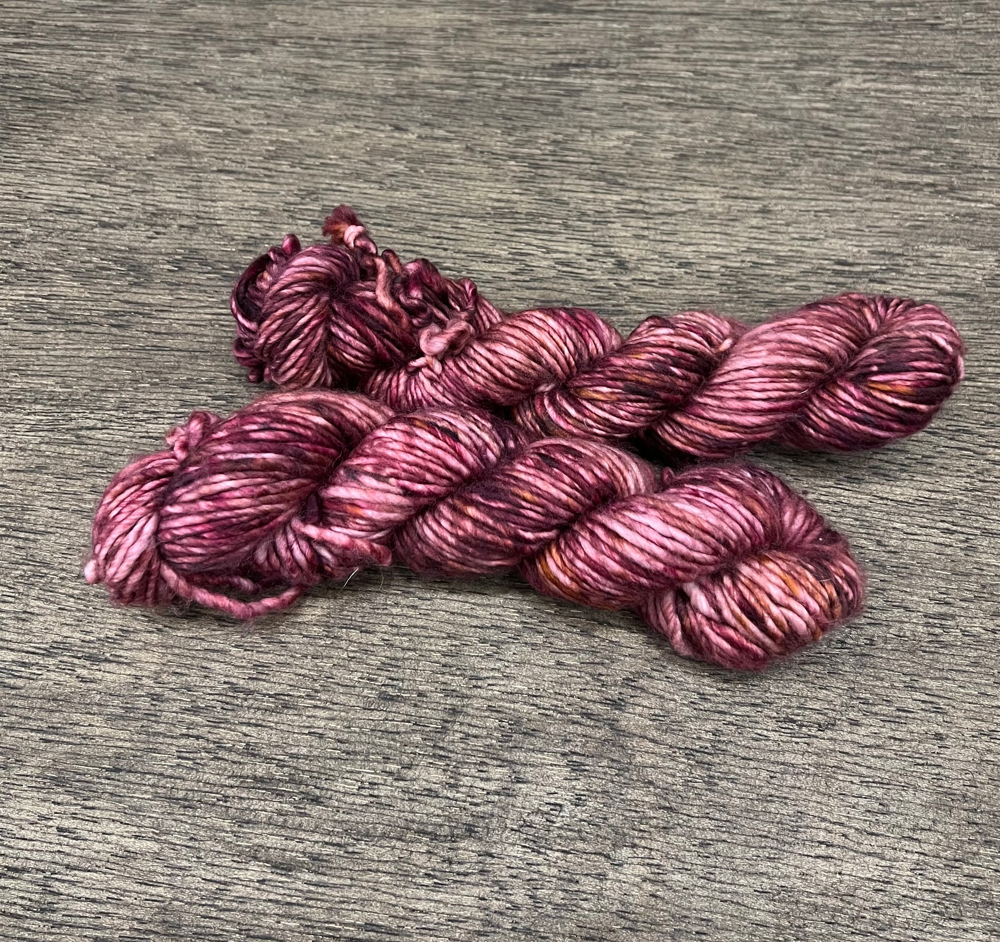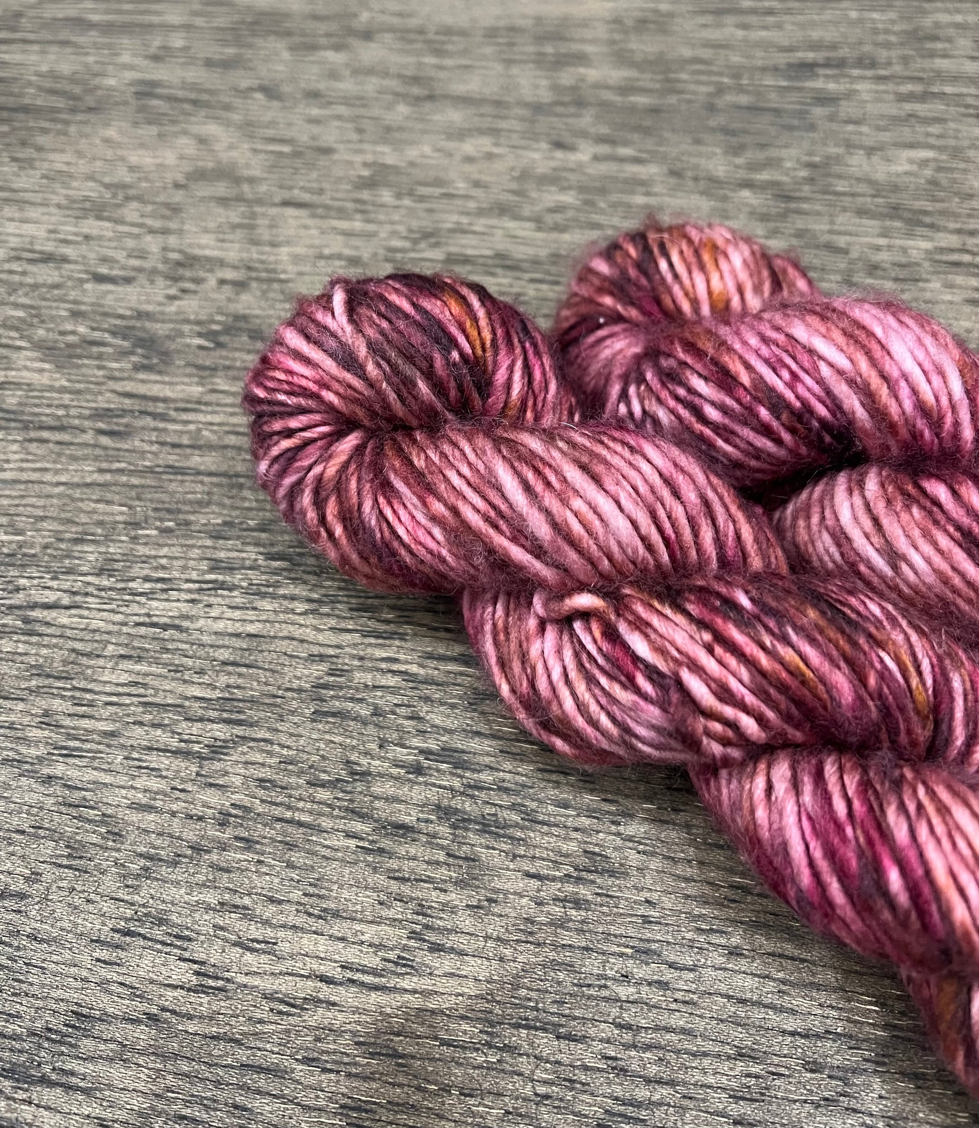 POCKETFUL OF POSIES- Purple Burbundy Brown Pink Soft Variegated SUPER BULKY